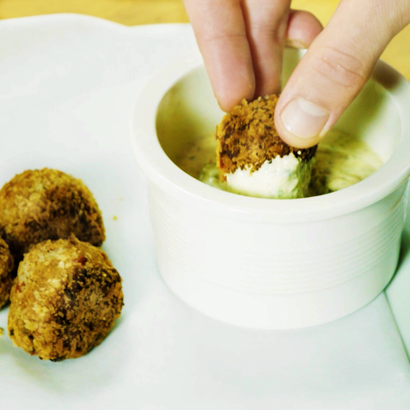 - Roll the chickpea mixture in to small balls and coat in breadcrumbs